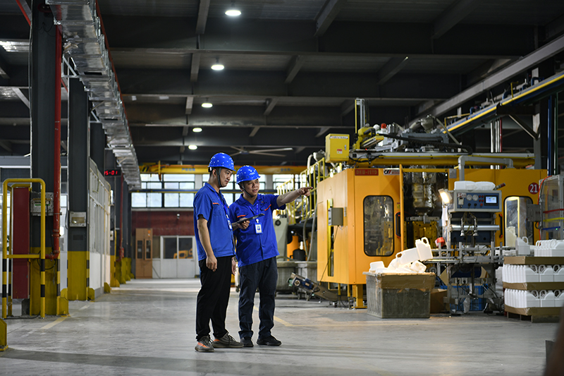 日均產(chǎn)EVOH/PE瓶120000、壺13000、20L桶6000、200L桶1000、蓋180000 (PCS)